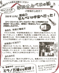 メディア掲載・出演 誌名 るるぶ 東武スカイツリーライン 発売日:2016/01/01 誌名 瀬崎まちづくりニュース 第116号 発売日:2015/08/03 誌名 東武よみうり新聞社 発売日:2000/10/20 誌名 読売新聞・若田宇宙飛行士からの回答(軌道上) 発売日:2000/10/20 誌名 毎日新聞・日本経済新聞・送付伝票 発売日:2000/10/14 誌名 朝日新聞 / 谷塚物語 掲載資料 誌名 りぷらい / 全国特産品案内 掲載資料